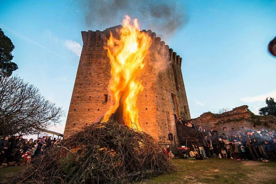 L’atmosfera magica dei Lòm a Mêrz inizierà a riempire l’aria alle ore 17.45 con il calar del sole: alle ore 18 sarà acceso il grande falò propiziatorio nel quale saranno bruciati simbolicamente, insieme a rami secchi e resti delle potature, i freddi e le fatiche dell’inverno, invocando con il tradizionale scongiuro propiziatorio una primavera benevola per la campagna. Attorno al fuoco andrà in scena uno spettacolo nuovo per ascoltare la musica di Quinzàn e i balli della tradizione romagnola come nessuno li ha mai sentiti.