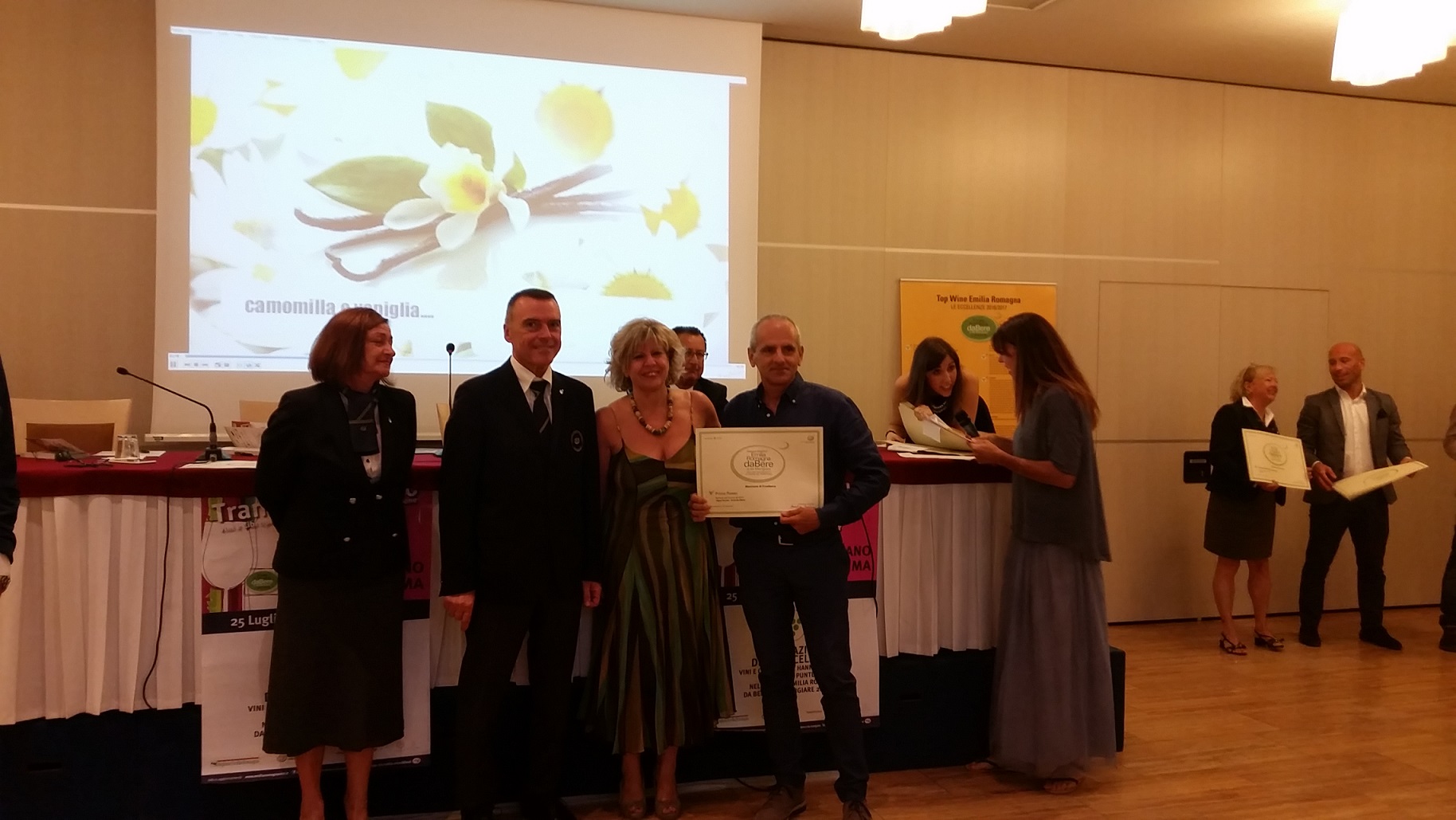 Premiazione Vigna CunialSorride la cantina biologica Vigna Cunial di Traversetolo (Parma), selezionata tra le aziende vitivinicole top dell’Emilia Romagna dai sommelier di Ais nella nuova edizione della guida “Emilia Romagna da Bere e da mangiare”, presentata lunedì 25 agosto al Palace Hotel di Milano Marittima. Secondo il giudizio dei degustatori professionisti dell’Associazione italiana sommelier, che hanno valutato alla cieca oltre mille vini delle cantine della regione, la Barbera dell’Emilia Igt “PrimoRosso” del 2012 è tra le etichette eccellenti in grado di superare il punteggio di 86/100, entrando così nell’Olimpo dell’enologia dell’Emilia Romagna. A consegnare il diploma d’eccellenza a Gian Maria Cunial, titolare della cantina Vigna Cunial, è stata l’Assessore all’Agricoltura dell’Emilia Romagna Simona Caselli.